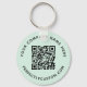 Light mint green, round keychains with your QR code and custom text. Change fonts and colors, move and resize elements with the design tool. NOTE! YOU NEED TO REPLACE THE QR CODE TEMPLATE WITH YOUR OWN QR CODE!