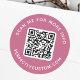 Round, rose mauve stickers with your QR code and custom text. Change fonts and colours, move and resize elements with the design tool. Follow us on Facebook: @businessstationery for more products, news, sales and more.