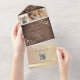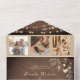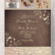 Set the tone for your special day with this rustic wood all-in-one wedding invitation, beautifully combining romance and modern convenience. Featuring glowing string lights, elegant gold floral accents, and a built-in RSVP section with a scannable QR code, this design offers both charm and functionality.