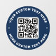 Window cling with your QR code and custom text, one line at the top and one at the bottom on a dark blue circle background. Change fonts and colours, move and resize elements with the design tool. Follow us on Facebook: @businessstationery or Instagram: @business.perfectlycustom for more products, news, sales and more. Perfectlycustom.com