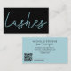 Minimal elegant hand lettering typography script aqua blue glitter and black modern eyelash expert QR CODE business card. +++++++++++ Suitable for lash bar, eyelash extensions experts, lash and brow specialists, salon owners, or employees.