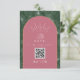 QR Code Arch Tropical Palm Pink Green Wedding RSVP Card