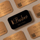 Trendy modern elegant barber shop men salon QR CODE business card with trendy chic typography in black and faux metallic copper gold. Suitable for barbershop, professional barber hairstylist, gentlemen's grooming salon. +++++++++++++++++++++ Perfect choice for an elegant stylish professional look. ++++++++++++++ Easy to personalise with your business, name, title, contact details, social media contacts, and your automatically generated QR CODE to your website, service menu, photo gallery, or any other page!