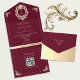 This baroque burgundy and gold all-in-one wedding invitation is the perfect mix of rich elegance and modern practicality. The luxurious deep red background with ornate golden monogram frame creates a royal and timeless look, while the foldable design doubles as its own envelope for easy mailing. Inside, the RSVP section features a scannable QR code that links directly to your wedding website for instant online responses. A sophisticated and convenient choice for couples hosting a formal, classic, or luxury wedding celebration.
