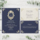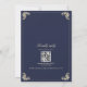Elevate your wedding stationery with this elegant navy blue and gold baroque wedding invitation. Featuring a luxurious gold monogram on the front and a scannable QR code on the back, it makes RSVP and wedding website access simple for your guests. Perfect for couples who want a timeless yet modern invitation design, this 5x7 template includes ornate vintage flourishes and sophisticated typography. Matching wedding stationery available to complete your suite.