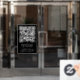 A simple custom black QR code vinyl window cling decal sign template in a modern minimalist style which can be easily updated with your QR code and custom text.