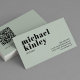 Simple elegant typography plain sage green and black trendy networking QR code business card. Suitable for a teacher, writer, designer, photographer, consultant, makeup artist, hairstylist, or any other independent professional. ++++++++++++ Easy to personalise with your details and QR code (automatically generated by simply inserting your URL link).