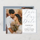 Introducing our elegant Save the Date announcement, crafted to set your wedding plans in motion with style and grace. Boasting a sophisticated photo template and prominent 'save the date' typography in a serene dusty blue hue against a pristine white backdrop, this design invites customisation with your own details for a truly personalised touch.