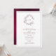 QR Code Burgundy Leafy Crest Monogram Wedding Invitation