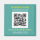 Personalise with your QR Code in any dark colour. Add your Business Name, website, message and phone in yellow and white text on teal background.
