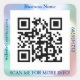 Personalise this sticker with your black and white QR Code and Business Name, website and number code in blue with iridescent border.
