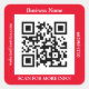 QR Code Bus. Name Website Promo, Red Square Sticker