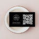 Simple custom corporate black QR Code and company logo business card in a modern minimalist style. The template can easily be updated with your QR code, logo and contact information.