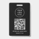 Modern QR code event badge designed for professional networking, conferences, trade shows, corporate events, and business gatherings. This clean, minimalist badge layout features space for your logo, a prominent QR code for instant contact sharing, the attendee name, professional title, and optional company branding. The reverse side includes additional business details such as company name, website, social links, or contact information, creating a compact digital business card that connects people quickly without exchanging paper. Ideal for entrepreneurs, small business owners, speakers, exhibitors, consultants, startups, and corporate teams who want a sleek, tech forward way to share information and drive traffic to their website or portfolio. The modern black background keeps the design polished and professional while ensuring the QR code remains easy to scan during busy networking events.