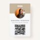 A modern minimalist personalised business badge with business logo, employee photo, text and QR code. Personalise with your logo, QR code and details to create your own unique business badge. Customise even further with a custom colour background or font.