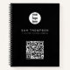 A modern minimalist personalized business notebook for anyone. A simple and professional way to introduce your business. Personalize with your logo, QR code and details to create your own unique elegant black and white business notebook. Customize even further with a custom color background or font. Social media icons included in the design of this business notebook for you to use.