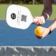 A modern minimalist personalised business pickleball paddle with business logo and QR code. Personalise with your logo, QR code and details to create your own unique elegant black and white pickleball paddle. Customise even further with a custom colour background or font.