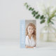 Make a memorable first impression with this modern and dynamic business card design. The bold vertical strip of pastel blue on the front elegantly frames your name, while a striking photo of you captures attention and adds a personal touch. The reverse side features your company logo, name, title, and all essential contact details, including a QR code, presented in a clean and organized layout, ensuring both professionalism and approachability.