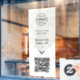 A simple custom grey and white QR code business vinyl window cling decal sign template in a modern minimalist style which can be easily updated with your company logo, QR code, and custom text, eg. Scan Me, Scan to Sign Up, Scan to Connect with us!