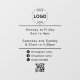 A simple custom logo business opening hours, template in a modern minimalist style . This versatile template allows you to easily design a custom opening times list for your store, salon, restaurant, cafe or any other business. Need help? Feel free to contact me using the message button. I am happy to help with your personalisation, additional items or custom orders.