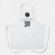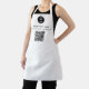 A modern minimalist personalised business apron with business logo and QR code. Personalise with your logo, QR code and details to create your own unique elegant black and white business design. Customise even further with a custom colour background or font.