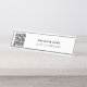A modern minimalist personalised business desk name plate with business QR code. Personalise with your QR code and details to create your own unique elegant black and white business desk name plate. Customise even further with a custom colour background or font.