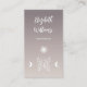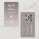 A butterfly tribal and moons in a mystical boho style on a taupe beige neutrals gradient. Your name in an elegant handwritten font. With a scannable qr code at the backside. For yoga studio, yoga teacher, massage studios, massage therapy, meditation teacher, energy healer, natural health counsellor, spas or wellness