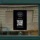 A simple custom black business vinyl window cling decal sign template in a modern minimalist style which can be easily updated with your company logo, QR code and custom text.