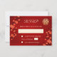 Red cherry blossoms on a shimmering red background and a gold double happiness symbol. RSVP Chinese Wedding Card. On the backside is a scannable qr code for your wedding website.