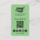 Featuring a vertical layout with a minimalist and modern script, these business cards are designed to make a memorable impression. The inclusion of a QR code provides a convenient way for clients and followers to connect with your social media platforms, including TikTok, Facebook, Instagram, and YouTube.