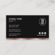 This business card design is the perfect combination of sophistication and modern style. Featuring a clean black background, a subtle rose gold accent, and a clear call to action with a QR code, it creates a professional and memorable experience for your clients.