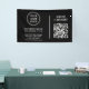 Versatile banner for your corporate events. Upload your business logo and QR code and customise with your name or other title, the "scan to" instruction (e.g., scan to learn more, scan to register, scan to sign in, etc.) and add additional details at the bottom if desired (e.g., phone number, street address, website, etc.). The white typography and black background colours can be changed by selecting to edit in the design tool or contact us at juliehortondesigns@gmail.com for assistance.