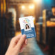 QR Code Corporate Logo Employee Photo Classic Blue ID Badge