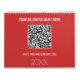 Custom Colours and Font - Calendars with Your QR Code Scan Info Custom Text Colours Personalised Promotional Business or Personal Modern Calendar Gift - Add Your QR Code - Image or Logo - photo / Text - Company - Name or other info / message - Resize and Move or Remove / Add Elements - Image / Text with Customisation Tool. Choose / Add Your Favourite Background and Text Colours / Font / Size ! Please see my others projects / designs. You can also transfer this designs to more than 1000 Zazzle products. Good Luck - Be Happy :)