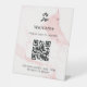 Blush pink marble print as background, black coloured text. With the text: Welcome. Personalise and add your business logo, QR code and text.