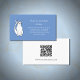 Trendy QR code pet sitter light blue business card with a cute black and white winking cat design. With white lettering, you can add you own information. You also add your website to the QR code field. Great for promoting your pet services business!