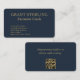 Modern navy blue and gold business card for executive coaches. Designed so clients can quickly save your contact details or book online using a QR code. Ideal for client meetings, networking, and referrals. Editable text and QR destination. Clean print-ready layout.