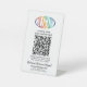 Welcome customers to your business and share any website with a custom QR code acrylic tabletop pedestal sign. To create your own QR code using the generator, simply type the website URL into the template. All wording is simple to personalise or delete, and the colours, fonts and logo transparency are also are easy to customise with the Zazzle design tool. The scannable code makes it easy for clients to view a contactless online menu, price list, opening hours, available services or promotional advertising. Guests can scan to check-in, follow your social media page, leave a review, offer feedback, or connect with your internet marketing. The modern black and white design features stylish script calligraphy, elegant minimalist typography, your corporate logo branding, and one QR code. Suitable for small businesses as well as large corporations, this company branded sign provides modern convenience to your customers with chic professional style.