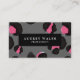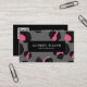 Modern, girly animalier networking card featuring digital image of leopard print in black and pink against a CHIC DARK GRAY colour. Black stripe overlay. Great for beauty, fashion , entertainment and event professionals, nail artist, fashion blogger, lawyer, realtor and much more