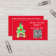 QR Code Gnome Hometown Bakery Business Card. Funny baker gnome with a macaron hat and holding a piece of cake. A fun bakery business card. Personalise this template with your information. Customise it further for more changes. Four social media symbols are on the back of the card. When customising it, any of the images can be taken off and moved around.