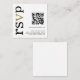 QR Code Gold Black Text White Wedding Online RSVP. A small 2.5” square enclosure to include when sending your invitations for convenient way for your guests to rsvp. Replace the sample QR code with your own, to create your code search “generate QR code” online. A modern typographical design with RSVP in large typography in black with the ”v” in gold, rotated and to the left hand side..
