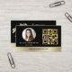 This elegant black and gold business card design combines luxury and modern functionality with a custom logo and QR code for instant access to your business details. With a sleek layout, this card is perfect for professionals wanting to make a bold, memorable impression. The QR code enables easy access to your website, portfolio, or social media, adding convenience for clients to connect with you directly. Ideal for anyone in search of a sophisticated, customisable business card solution with a touch of glamour.