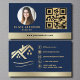 Showcase your professionalism with this navy blue and gold QR code real estate business card. A modern gold house icon adds instant brand recognition, while the QR code offers a quick link to your listings, website, or contact info. The bold navy background conveys trust and sophistication, making this design ideal for real estate agents, brokers, and property consultants who value modern elegance and function. Fully customisable — add your name, logo, and QR code for a polished, ready-to-use marketing tool.