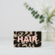 A bold font in blush pink, on an asymmetric abstract design in black. This version has a qr code on the back, and is aimed at hair stylists.