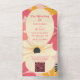 QR Code Groovy Retro Pink & Gold Wedding All In One Invitation