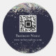QR Code Holographic Glitter Business Blue Classic Round Sticker