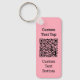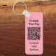 Custom QR code keychain. Custom background colour (use a light one). Custom text on both sides.