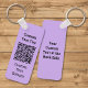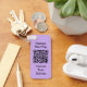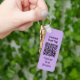 Custom QR code keychain. Custom background colour (use a light one). Custom text on both sides.