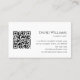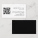 Black and white business cards, with a classic design and simple typography. With customisable black lettering, you can add your own information. You also add your website to the QR code with your URL. The back has a black background to add contrast, a tasteful and classic addition to your business or home office.