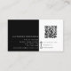 Modern black and white design. Elegant, professional and sophisticated composition for a minimalist business card. Social media icons of facebook, instagram included, as well as web page icon, but they can be removed, other ones uploaded in edit mode. Placeholder QR code also included. Please personalise QR Code. Please personalise front and back as the card is double-sided.